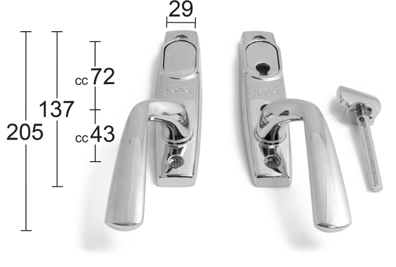Kann auch mit einem Ovalzylinder für ein Stangenschloss montiert werden. Verwenden Sie bei der Montage immer den längstmöglichen Vierkantstift. Der Stift muss auf beiden Seiten vollständig in den Griff eingeführt werden.