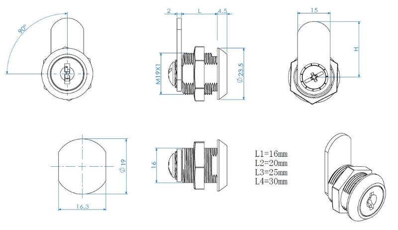 Small, easy furniture locks that can be installed in both wooden and steel doors, please note that the thread itself is long enough for you to get the screw on, see the drawing on the product.