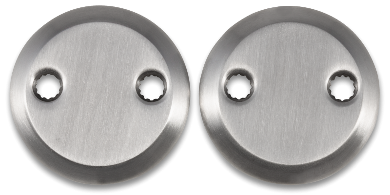 Ind- og udvendig blindrosetter i massiv rustfrit stål til montering over cylinderhullet på døre, hvor der ikke ønskes vridergreb eller cylinder. Leveres i sæt inkl gennemgående skruer.