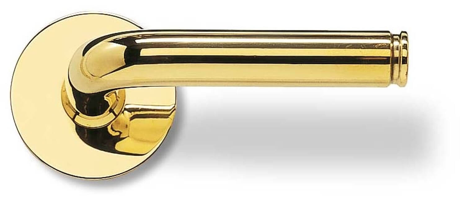 Dørgrebet leveres i massiv forkromet messing med fastmonteret massiv 50 mm roset - et materiale, der med sin glød og gedigne præg fremhæver den klassiske udtryksform.