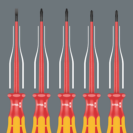 7 VDE iSS Kraftform-schroevendraaiers met kleinere klingdiameter en deels kleinere handgreepdiameter