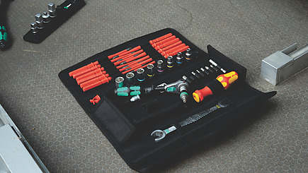 Compacte gereedschapsset met de 35 belangrijkste schroefgereedschappen voor servicewerkzaamheden binnen en buiten.