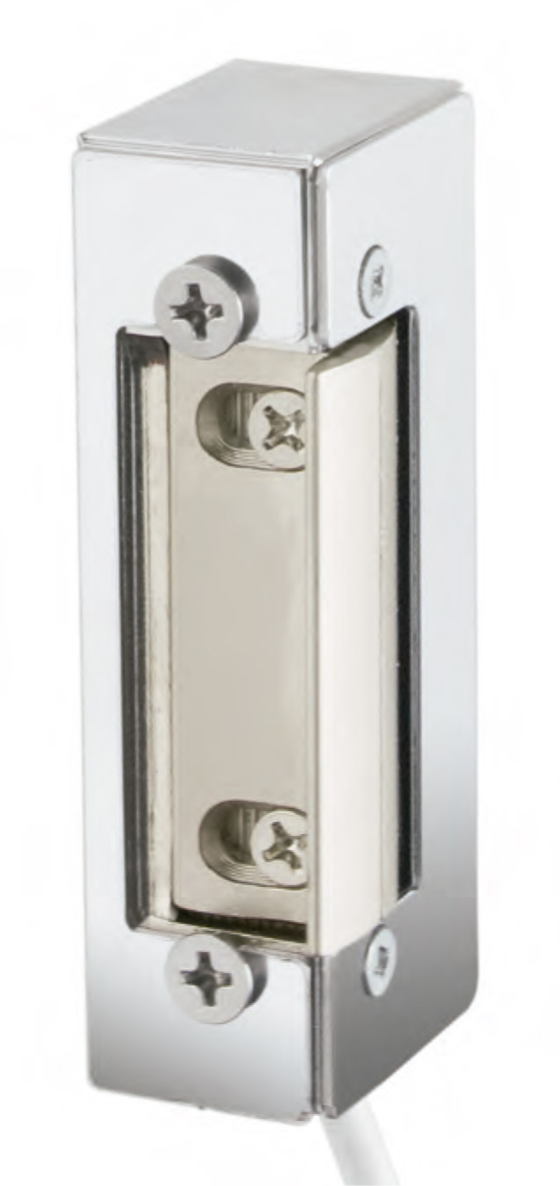 Et robust symmetrisk blik udført i kompakt størrelse med en brudstyrke på hele 1000 kg samt en indbygningsdybde på kun 28 mm. Særligt velegnet på døre med meget trafik. Fås i flere forskellige modeller fra 8-24 V i AC og DC, med eller uden tilbagemelding KUN som retvendt (strømløst låst). Afprøvet til mere end 500.000 åbninger.