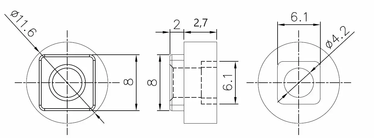 Kamstuk Converter 6x6 mm naar 8x8 mm