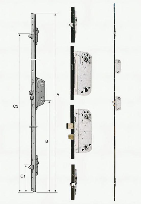 Ekstra riglelås Assa 9788 med 1500 mm til øverste cylinderhul.