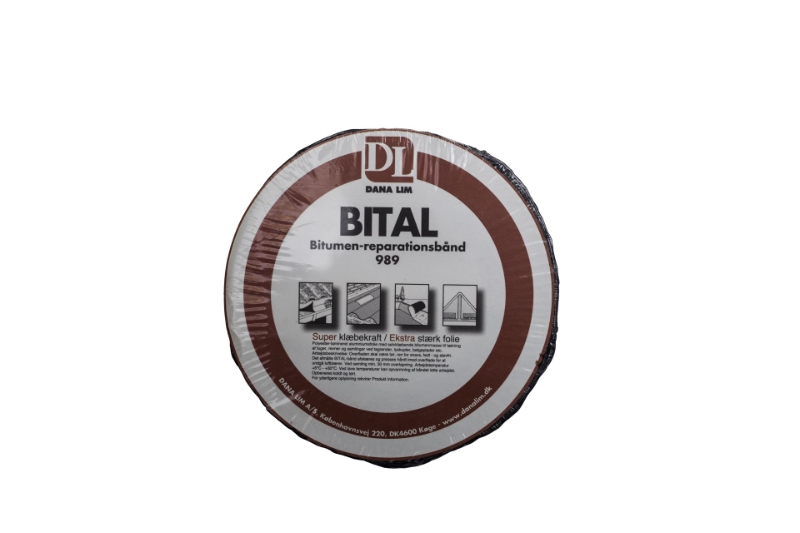 Bital-Bånd 989 är en självhäftande reparationstejp som består av en folie belagd med starkt självhäftande bitumenbaserat lim. Tejpen används för att täta och limma ihop hängrännor, åkljus, takfönster, takskorstenar, hängrännor, väggar, dräneringsrör, blybeläggningar etc. Tejpen har goda rostskyddande egenskaper. Tejpen är enkel och snabb att använda.
