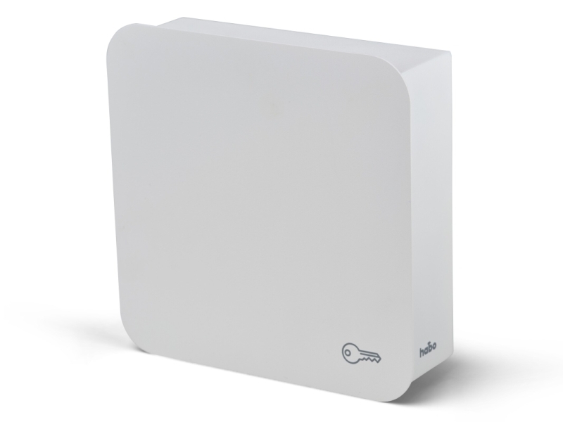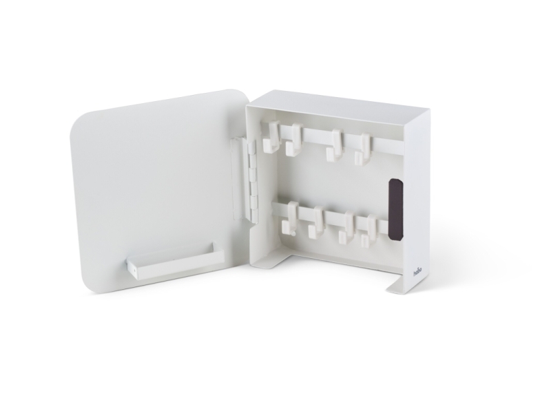 Snyggt och modernt nyckelskåp i stål med åtta krokar. För väggmontering inuti..